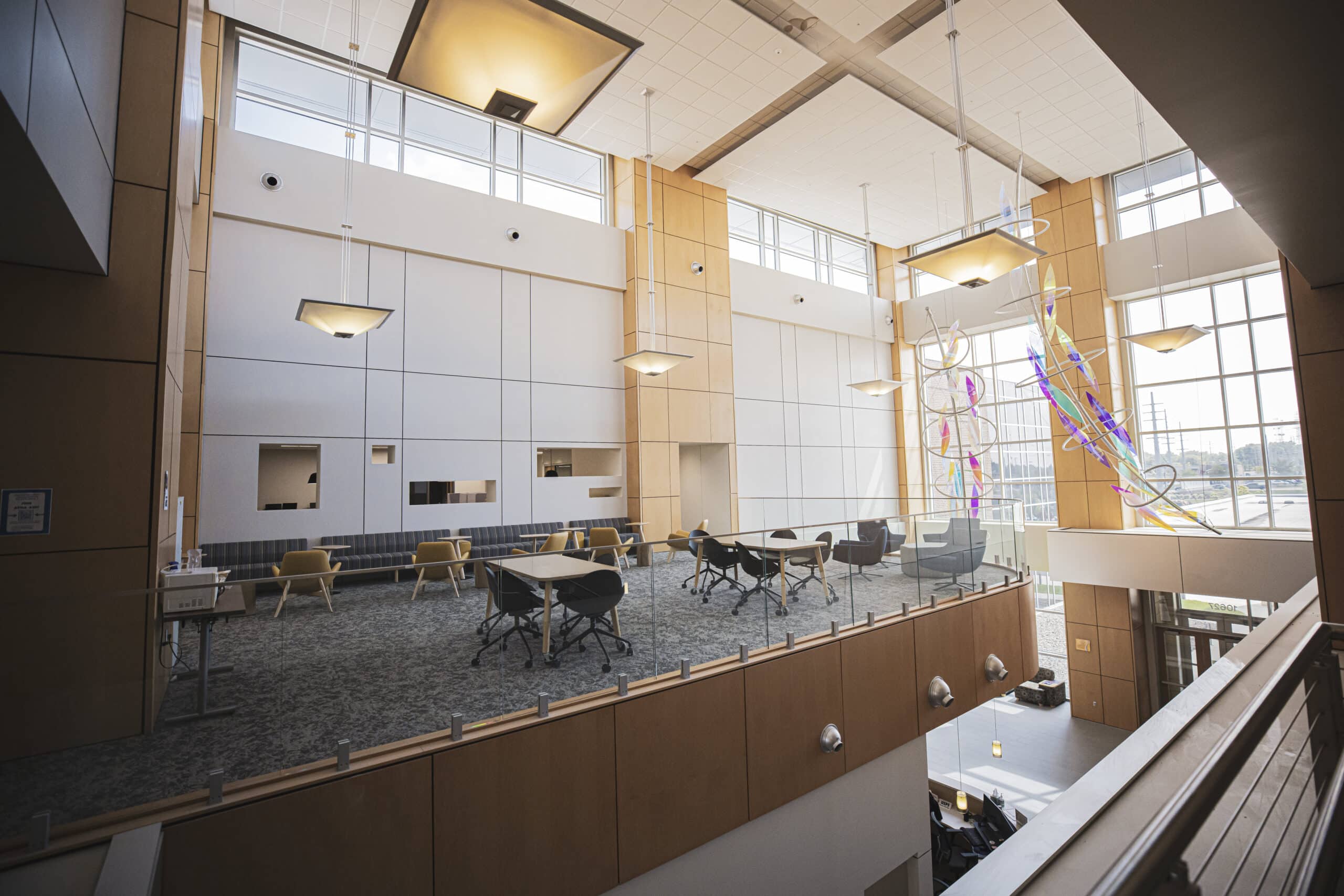 Fort Wayne Location Atrium. Upon entering the Fort Wayne Location building, guests are welcomed by an impressive atrium. This visually stunning space, with its 48-foot ceiling, windows, and art provides a unique backdrop for arriving guests.