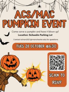 Join the Manchester American Chemical Society and the Manchester Activities Council in their combined event. Come to the Schwalm Parking lot to carve a pumpkin and then have it explode!